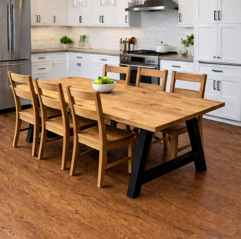 Each table is crafted to your exact specifications, blending rustic charm with modern design for a perfect fit in your home.